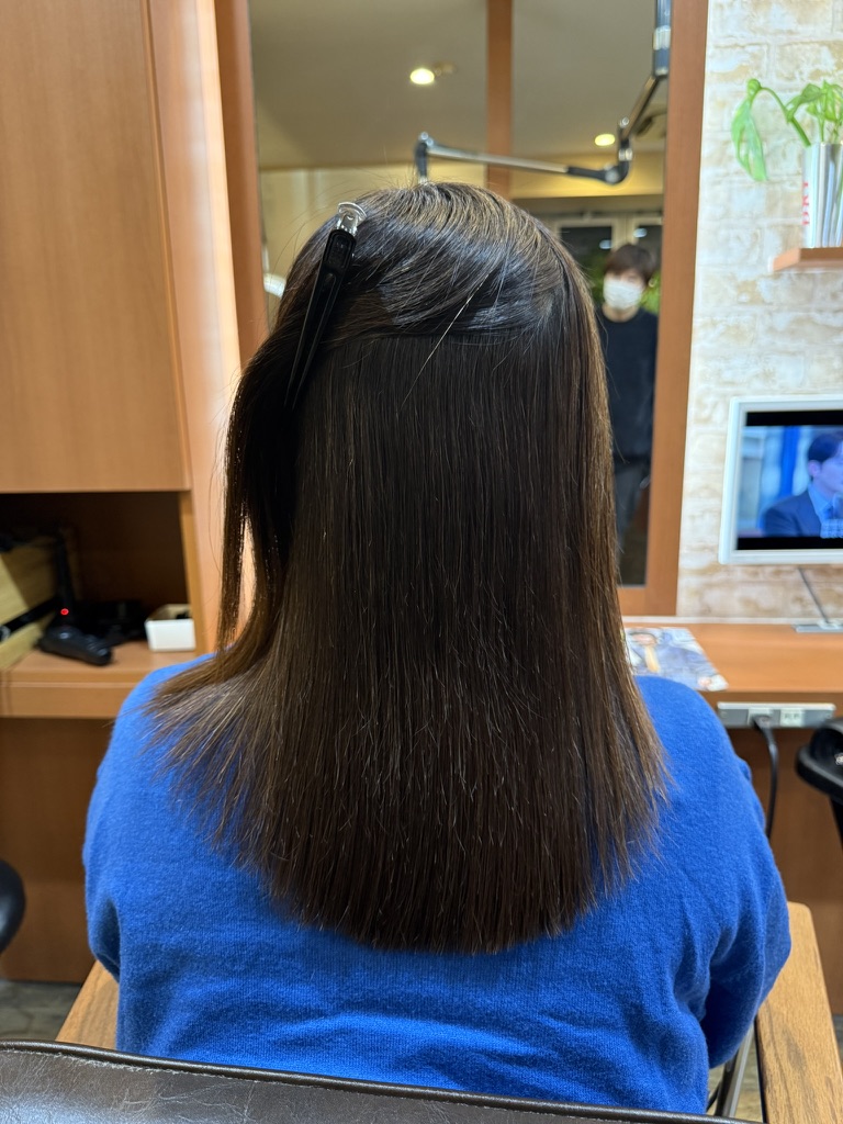 エイジングが進んで髪が細くなりダメージがしやすくなりました。伸び切らない短い髪もたくさんあります。毎日アイロンも入れているゲスト様です。ご来店時もアイロンをされてました。