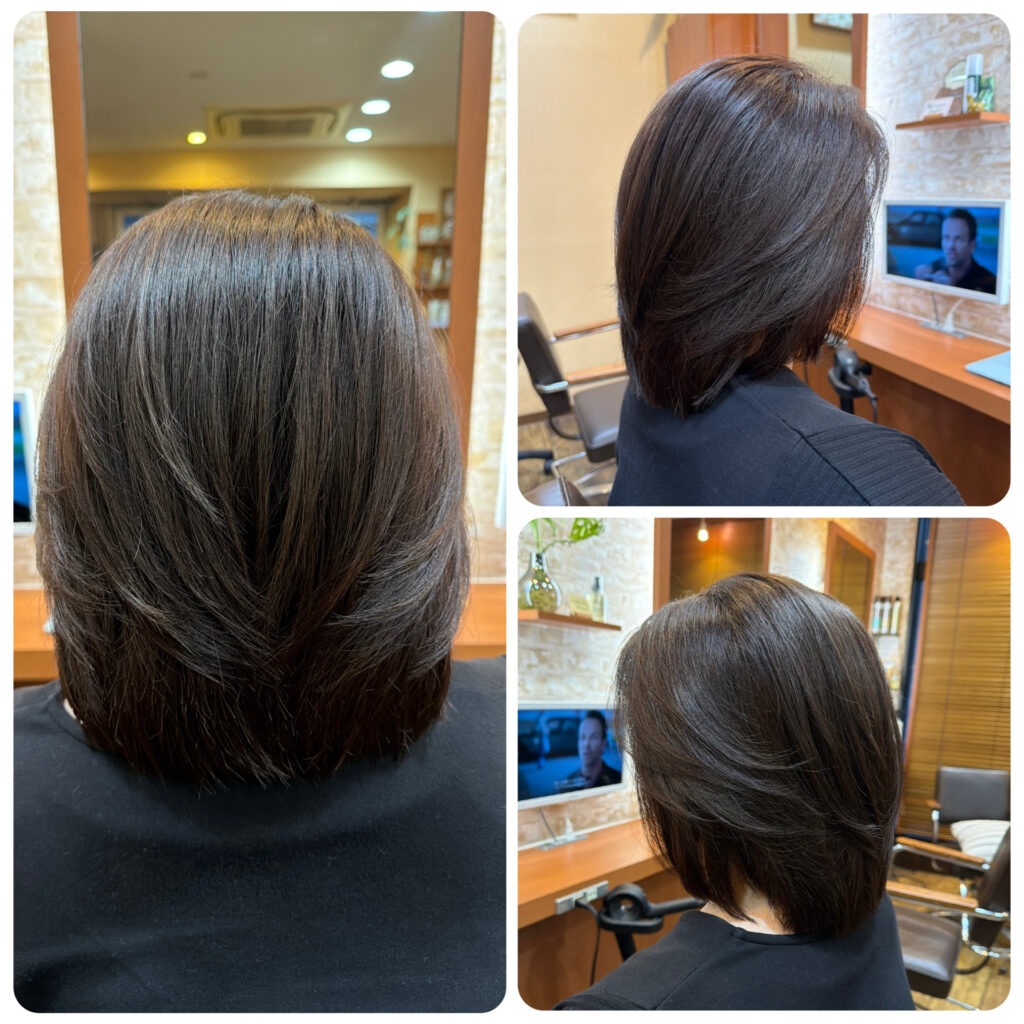 - 7右3段目=トリートメントカラー+再結晶化トリートメント+ブロー
