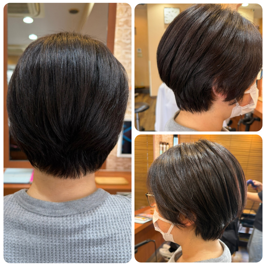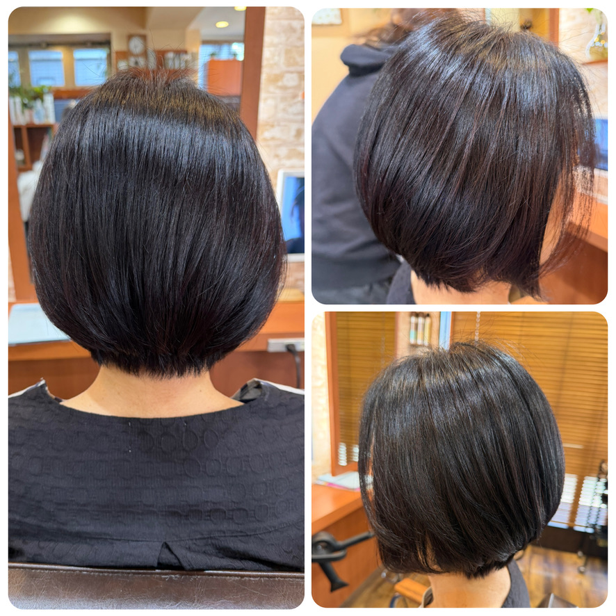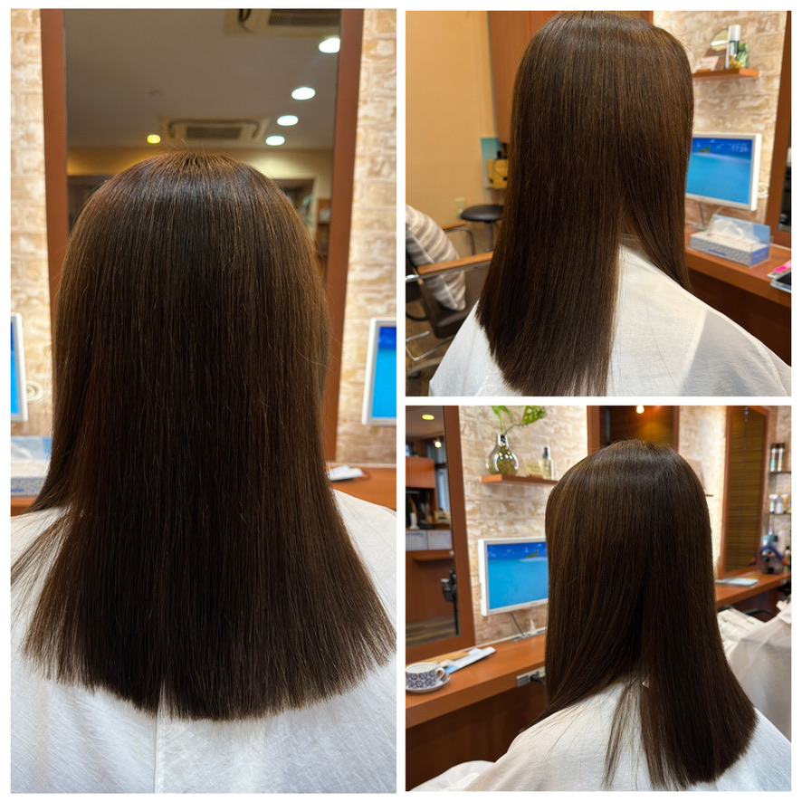 - 左中央=ココナッツ縮毛矯正+カクテルカラーお白髪染め+カット¥33,550